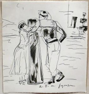 DUNOYER DE SEGONZAC, André (Essonne 1884-1974 Paris).- Marin discutant avec une demoiselle.