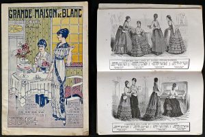 2 catalogues brochés (tissus et vêtements) : Grands magasins du Printemps. Hiver, 1874.-- Grande maison de Blanc. Été, 1914.