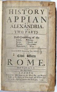 APPIANUS Alexandrinus.- The History, in two parts. The first consisting of the Punick, Syrian, Parthian, Mithridatick, Illyrian, Spanish and Hannibalick wars. The second containing five books of the Civil wars of Rome.