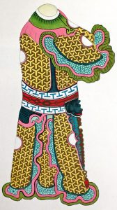 Péking, Henri Vetch, 1935. In-4°; 115 pl. (qqs rouss. ou piqûres surtout au début et fin). Rel. d'édition : bradel pleine soie brochée dorée à motifs chinois, dos lisse, plat sup. de la couv. cons. (soie lég. éraillée surtout aux mors). ÉDITION ORIGINALE DE LA TRADUCTION de cet ouvrage de référence dû à l'ancien directeur des Postes chinoises et traitant de la musique, du statut des acteurs, des conventions de grimage, des pièces, de l'argot de scène, des costumes et accessoires, etc. Complet des 115 planches en couleurs (qqs-unes avec plusieurs sujets par pl.). Tirage à 320 ex. sur Croxley de luxe dont 20 h.c. (n° 41).