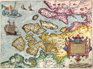 Gravures sur cuivre, rehaussées à l'aquarelle. (1). ORTELIUS, Abraham.- "Zelandicarum insularum exactissima et nova descriptio." TC 34 x 46 cm + marges (pli centr.). Carte d'après Jacob van Deventer extraite du "Théâtre de l'Univers" publié à Anvers par Plantin en 1598. Texte français au verso (p. 46). # van den Broecke 78; # van der Krogt [3600:31] & 31:351 (1598 French).-- (2). VISSCHER, Nicolaus.- "Comitatus Zelandiae." TC 46,2 x 54,7 cm + marges (pli centr., pet. taches, pet. déchir., échelle découpée). # Koeman III [Vis 10/16].