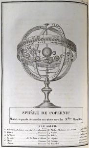 Paris, Delamarche, 1843. In-8° : xii-236 pp.; 8 h.-t. (rares claires rouss.). Rel. de l'époque : demi-veau marbré, plats de papier marbré, dos lisse (cuir frotté, coins émoussés, mention ms. sur la garde sup.). Manuel d'astronomie pratique dû à Delamarche (1714-1811), successeur du géographe et éditeur d'atlas Robert de Vaugondy. Illustré de 8 planches, dont 2 dépliantes, représentant e.a. des sphères armillaires et 1 tellarium. L'édition originale parut en 1791.