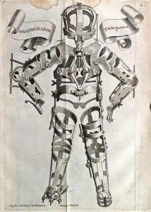 Lugduni Batavorum [ Leiden], ex officina Boutesteniana, 1723. In-f° : [12] pp., 1/140-140a/140q-141/743 col., [24] pp.; 9 h.-t. dépl. (ex-libris au verso du titre part. décollé, claires mouill. marg. sauf qqs-unes affectant un peu les pl. lég. brunies, qqs pp. lég. brunies, rouss. et qqs piqûres, impression floue de la pl. E, déch. dans la pl. F. dont 2 renforcées). Rel. de l'époque : plein veau marbré, dos fleuronné doré à nerfs, tr. rouges (griffes sur les plats, taches, manques de cuir, coiffes manquantes, coins et la plupart des coupes à nu). Illustré de 9 planches : 7 d'instruments de chirurgie et 2 figurant de curieux appareils orthopédiques. Fabrici (c. 1533-1619), fut professeur de médecine à l'Université de Padoue où il avait suivi les cours de Fallope, lui-même élève de Vésale. Il fut l'un des plus grands embryologistes de son temps, il étudia le premier le placenta ainsi que les structure, distribution et position des valves sanguines. L'édition originale parut en 1617.
