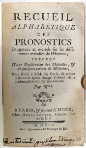 Recueil alphabétique des pronostics dangereux & mortels sur les différentes maladies de l'homme, précédé d'une explication des maladies, et de quelques termes de médecine, pour servir à MM. les curés, & autres personnes ayant charge d'âmes,...