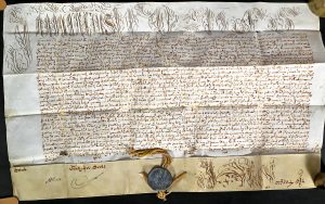 Bulle papale "cum floribus" d'Innocent XII (1691-1700) en faveur de François Stembier à propos de la collation d'un canonicat à la Collégiale Saint-Jean-en-l'isle de Liège.