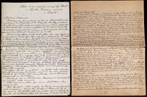 (2). Les documents autographes : (2a). Longue lettre d'Eugène, en français, 16 janvier 1894 : les De Grave, détenus depuis de longs mois, espèrent une grâce, se disent grugés par leurs avocats qui les ont mal conseillés et n'ont repris, dans le témoignage du cuisinier, aucune des contradictions, absurdités et faussetés scrupuleusement relevées et commentées par Eugène. A le lire, on le sent révolté et impuissant devant le manque de perspicacité des juges et des avocats, sa demande de 87 témoins à décharge laissée sans suite, etc., mais l'affaire s'est passée aux antipodes, l'administration est en désordre et les preuves, témoignages, certifications, traduction demandées sont difficiles à obtenir... "Laissez nous nous expliquer librement devant des juges non influencés et je vous assure qu'il en résultera un acquittement pur et simple !".-- (2b). Copie d'un long mémoire envoyé de la prison de Brest à Maître Texier, avocat à Tahiti, 2 mars 1894, encre noire et rouge (soulignant les points importants), "signée" par "Alexandre Rorique" (?, sic) et "Eugène "Rorique" (?) : Texier est chargé de retrouver et enregistrer les témoins à décharge pour les frères, de traduire correctement des documents et de prouver quelques faits pouvant casser le témoignage du cuisinier et donc le jugement (attestation du handicap d'un matelot au pied estropié, sobriété absolue d'un autre matelot à qui les frères auraient fait boire du rhum empoisonné, récusations de l'achat de matériel de navigation), liste des gens à contacter et, enfin, le long, détaillé et assez convaincant "récit exact de toute cette triste affaire" (pp. 8-28). En note, Léonce ajoute pour Auguste : "Je vous jure que les moindres détails sont l'exacte vérité. Ce sera une consolation pour maman & la famille que de savoir comment les choses se sont réellement passées & vous y puiserez l'espoir & l'assurance qu'un jour, la Justice, étant éclairée, vos malheureux frères seront rendus à la famille [...]".