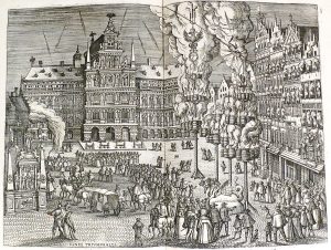 Complete and richly illustrated work on the celebrations of the entry of archduke Ernest in Antwerp on June 14th 1594 but dedicated to the archduke Albert since Ernest died in February 1595. Nice contemporary binding.