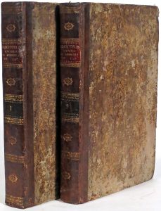 Tolosae, apud Dominicum & Petrum Bosc (apud Raymundum Colomerium), 1619. 2 vol. in-f° à pagination continue : [34]-1/636, 636/1248-[22] pp. (rouss. ou piqûres passim, vol. brunis, plusieurs pp. fortement, mouill. marg., marge inf. du titre restaurée et faux titre avec déch. renforcée au vol. I, galeries de vers marg. au vol. II). Rel. du 19e s. : demi-basane marbrée à petits coins de vélin, plats de papier marbré, dos lisses fleuronnés dorés (rel. fort frottée, pet. manques ou trous de vers à 2 mors, coiffe inf. du vol. II restaurée, coupes et coins fortement émoussés, gardes renouvelées). ÉDITION ORIGINALE DE LA TRADUCTION juxtalinéaire par Scaliger, abondamment commentée, publiée après sa mort par Philippe-Jacques de Maussac (1590-1650), président de la Chambre des comptes de Montpellier. Illustré de 23 in texto et d'1 vignette de l'imprimeur.