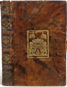 Antverpiae, ex officina Plantiniana, Balthasaris Moreti, 1639. In-f° : [32 dont titre gravé]-304-[32 dont 2 bl.] pp. (galeries et trous de vers marg. dans la moitié de l'ex., ex. lég. jauni sauf qqs pp. brunies, piqûres et rouss., pp. 217-219 inversées, claires mouill. aux 2 derniers ff.). Rel. armoriée de l'époque : plein veau moucheté, armoiries dorées au centre des plats, dos fleuronné doré à nerfs, tr. dorées (éraflures, mors sup. part. fendu, coiffes fendillées, coupes et coins très fortement émoussés, ex. rogné, garde sup. manquante, ex-libris armorié sur le contreplat). Seconde édition (?) (éd. orig. : 1638 ?) de ces commentaires et apparat critique des Fastes. Illustré d'1 titre gravé d'après Érasme Quellin et de quelques in texto. Précédé de 6 calendriers dont un orné des signes zodiacaux.
