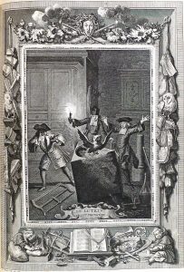 La Haye, Pierre De Hondt, 1729. 2 vol. in-f°; front. et 6 h.-t. (texte n.c., ex. lég. bruni, piqûres éparses, qqs taches ou salissures, déch. à la cuvette du cul-de-lampe de la p. 49 au vol. I, rares corrections mss dans le texte). Rel. de l'époque : plein veau, dos fleuronnés dorés à nerfs, tr. marbrées (plats frottés, trous de vers aux mors du vol. II, l'inf. part. fendu, qqs coins à nu). Illustré d'1 joli frontispice allégorique et de 6 compositions par Bernard Picart illustrant le poème "Le lutrin". Le titre de ce dernier se présente dans un encadrement richement décoré. Très belle typographie avec texte dans un cadre typographique, très jolis culs-de-lampe historiés et vignettes de titre au portrait d'Érasme. Exemplaire à grandes marges.