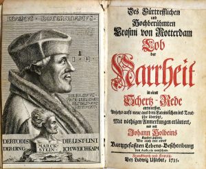 ERASMUS, Desiderius.- Des fürtrefflichen und hochberühmten Erasmi von Rotterdam Lob der Narrheit in einer Schertz-Rede entworffen [...].