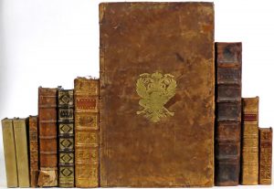 [RONSARD, P. de.- Les oeuvres. P., Buon, 1567], 2 t. en 1 vol. (incomplet du titre). T. 3 & 4 (sur 6).-- BUTKENS, Ch.- Trophées du Brabant. Anv., Leger, 1641, 2 parties en 1 vol. (fort défraîchi). Titre gravé, carte dépl. et in texto.-- AMELOT de LA HOUSSAYE, A.-N.- Tibère, discours politique sur Tacite. Amst., héritiers de D. Elzevier, 1683. Édit. orig.-- Relation de l'inauguration solennelle de [...] Marie Thérèse [...]. Célébrée à Gand [...] le xxvii avril 1744. Gand, Goesin, 1744. Édit. orig.; portrait de l'impératrice et grande pl. dépl. figurant la réception de la Joyeuse Entrée (déch. sans manques); ex. de présent aux armoiries de Marie-Thérèse et de Gand.-- LENCLOS, N. de.- Lettres au marquis de Sévigné. Amst., Joly, 1750. Portrait et titre gravé; ex-libris Jean Gigodat.-- LEVESQUE de BURIGNY, J.- Vie de Grotius. P., Debure, 1752, 2 vol. Front. dépl.-- [LIGER, L.].- La nouvelle maison rustique, ou Économie générale de tous les biens de campagne. 8e éd. P., Knapen, 1762. Front. et qqs ill. in et hors texte.-- The annual register, or A view of the history, politics, and literature, for the year 1778. London, Dodsley, 1779.-- [BAUDRAND, Bart.].- Esprit, maximes et pensées d'Young, extraits de ses Nuits. P., Cailleau, 1787. Supra libros "Collegium Aviciense".