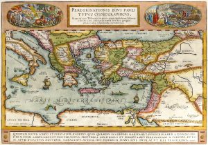 Techniques variées, formats divers, rehaussées à l'aquarelle. (1). ORTELIUS, A.- "Peregrinationis divi Pauli typus chorographicus." (1579).-- (2). STOOPENDAEL, B.- "De Beschryvingh van de reysen Pauli [...]. (Amsterdam, ca. 1729).-- (3). IDEM.- "Het Beloofde Landt Canaan [...]. Extraite de la Bible des États publié par la famille Keur. Les autres cartes par Sanson (2), Châtellain, Van Luchtenburg et Lacoste.