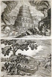 Bible illustrée d'un titre gravé et de 25 pl. légendées en néerlandais. Reliée avec les Psaumes de David mis en musique. Plein veau de l'ép. (ex. part. bruni, rel. frottée, mors fendus et renforcés).