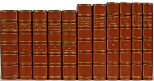 Rel. de l'époque : demi-oasis rouge orangé à coins, plats de papier marbré serti d'un filet doré, dos à nerfs et caissons sertis de filets dorés, têtes dorées, couv. et dos cons. (lég. us., ombres blanches à qqs vol.). Tant que la terre durera. P., Table ronde, 1947 [- 1950], 6 vol. Deuxième éd. contenant Le sac et la cendre et Étrangers sur la terre; ill. de frontisp. en coul. par Grau Sala; ex. du tirage courant num. sur vélin pur fil.-- Les Semailles et les moissons. P., Plon, 1953 [- 1958], 5 vol. ÉDITION ORIGINALE contenant Amélie, La Grive, Tendre et violente Élisabeth, La rencontre; 1/47 de tête num. sur Madagascar (1/30 mis dans le commerce).