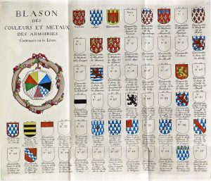 Liège, J. F. Bassompierre, 1791. In-f° : [2]-iv-344 pp.; 8 (sur 9) h.-t. dépl. (non rogné, qqs pp. brunies, pet. restaurations aux plis de qqs pl.). Relié par Bonnarens (Bruxelles) : demi-veau, plats de papier marbré, dos à nerfs avec titre doré (lég. us.). Ouvrage indispensable pour l'histoire de la noblesse liégeoise (éd. orig. : 1673) illustré de 8 planches contenant 651 armories mais incomplète de celle illustrant le sceau de l'état noble avec les armories de ses membres qui manque souvent. "En conservant le texte de l'auteur, l'éditeur a dissipé l'obscurité qui régnoit dans la généalogie de l'illustre famille de Dammartin, et il a classé par ordre alphabétique celle des autres familles, dont Hemricourt fait mention dans son livre".