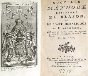 (1). Le véritable art du blason, ou L'usage des armoiries. P., Michallet, 1673 (papillon sur le fleuron du titre).-- (2 & 3). La nouvelle méthode raisonnée du blason pour l'apprendre d'une manière aisée. Nouv. éd. Lyon, Lions, 1701 + 1 ex. de l'éd. parue chez Bruyset Ponthus en 1770; 2 ex-libris différents de Roger Denille.