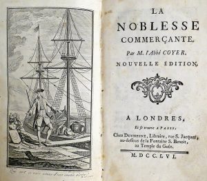 MALTE, H.Fr. de.- Les nobles dans les tribunaux, traité de droit enrichi de plusieurs curiositez utiles de l'histoire et du blazon. Liège, Streel, 1680, in-f°; ex-libris Roger Denille.-- COYER, G.-Fr.- La noblesse commerçante. Nouv. éd. Londres, et se trouve à Paris, Duchesne, 1756. Ill. d'1 front.