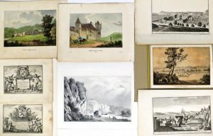 Techniques variées, formats divers, qqs-unes rehaussées de couleurs (petit défauts sinon bon état général). 12 planches par George Arnald (1763-1841), certaines extraites de son album "River Meuse [...]", (London, 1828). Avec des jolies mezzotintes par Dawe ou Reynolds et 5 épreuves très populaires auprès des collectionneurs anglaises de l'époque.-- 6 vues par J.B. Madou (1820-1877) extraites du "Voyage pittoresque dans le royaume des Pays-Bas".-- 10 vues par Beaulieu, extraites des "Plans et profils des villes des principales villes et lieux considérables".-- 41 planches et 6 pages de texte extraites des "Délices du pais de Liège" (1738-1744).-- 3 planches "Rives de la Meuse" d'après Bayot.-- Les autres par P. Lauters, P.A. Desrosiers, Challamel e.a.