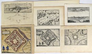 Techniques variées, formats divers (petit défauts sinon bon état général). Carte (1).-- Plans (20) dont 1 par De Wit, 3 identiques du Guicciardin, 7 id. et 1 autre du Braun et Hogenberg, 5 id. par de Beaulieu.-- Vues topographiques (3 id.) par Beaulieu.