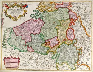 Techniques variées, formats divers, qqs-unes rehaussées de couleurs (petit défauts sinon bon état général). Belgique : cartes (11) par De Wit, Andriveau-Goujon, Sanson, Jaillot, Robert, Beaurain, de l'Isle, Dênos, Janvier et Senex.-- Titre de la "Carte chorographique de la Belgique [...] dressée d'après celle de Ferraris" par Capitaine et Chanlaire.-- Pays-Bas & Belgique : cartes (2) par Delamarche et par Walker.-- Plans (4) de Terneuse, Philipine, Axel et Sas de Gand par Beaulieu.-- Vue topographique de Lewarde par Harrewijn.-- Flandre : carte (1) par Beaulieu.-- Vues topographiques dont 1 de Bourbourg par Blaeu, 1 de la bataille de Furnes et les autres d'Alost, Gavere ou Oudenaarde par Devel et Peeters.