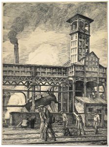 Dont : (A). 17e & 18e s. : Fonderie de canons. Par J. Stradan, gravé par Ph. Galle.-- Le chevalier Goffin et son fils dans la houillerie Beaujonc. Par H. Johns (tirage moderne sur papier vélin).-- (B). 19e s. : Chemin de fer à Vilvorde. Par Hoolans (lithogr.).-- Fonderie royale à Liège. Par le chev. de La Barrière (lith.).-- Usine d'Hornues. Par Madou (lith.).-- Forges près de Marche-les-Dames. Par le Gén. Howen (lith.).-- Intérieur des forges de Hoyaux. Par Madou (lith.).-- Moulin à eau. Par Martin Van Kuytenbrouwer, 1850 (e.-f.).-- Moulin à eau de Ruisdael. Par Geoffray (chalcographie Louvre).-- Cristallerie du Val-St-Lambert (lith., abîmée, doublée sur toile).-- Qqs reprod. de la Belgique industrielle etc.-- (C). Première moitié 20e s. : Les forges Roussel près de Florenville. Par Marie comtesse de Flandre, [1910] (e.-f. just. 77/200).-- Train des fonderies de Haine-St-Pierre (photo).-- Travailleurs d'usine. Par Gustave Pierre, 1937 (e.-f.).-- Forgerons. Par Delasalle (e.-f.).