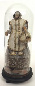 Cire habillée, s.l., s.d., 2 pcs sous globes. Saint Joseph et l'enfant Jésus et Le petit Jésus de Prague. Cire, tissu.