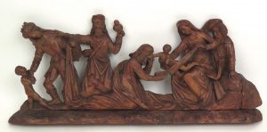 Sculpture. Aanbidding der Wijzen. Duitsland (?), 18de e.,  lindenhout, c. 71 x 29 x 8 cm. Mooi halfverheven beeldhouwwerk.