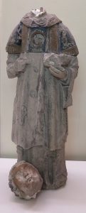 Het beeld dat een heilige priester voorstelt, heeft in de borstkast een lege holte voor een reliekhouder.