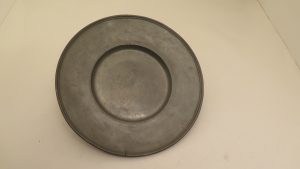Assiette "à la cardinal" à aile large, bord mouluré. Poinçon à la face inf. : de G. de Tongres III (maître en 1698) : rose couronnée avec initiales GT (Dangis n° 2417) et château à 3 tours avec initiales GT et date "1698" (D. 2416).