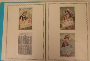 Petits calendriers publicitaires illustrés au recto et comportant un calendrier au verso, la plupart pour 1883-1884. Pour les fils à coudre Borreman à Alost, Vander Smissen ou Julius Schürer, l'amidon Remy à Louvain (nombr. pcs) ou Hoffmann, les biscuits Peek, Frean & Co ou Lefèvre-Utile, le bouillon Kemmerich, l'eau de Cologne 4711, le Grand Bazar à Bruxelles, la parfumerie Regina, le chocolat Neuhaus à Bruxelles... et le Petit Larousse illustré de 1922 sous forme de livret.