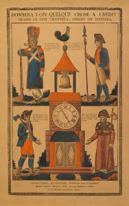 7 images profanes dont 2 par Georgin : Donnera-t-on quelque chose à crédit et Degrés des âges, 1 par Wendling : Le grand saint Lundi, - et Le célèbre Gargantua, Les marionettes, Le juif errant & L'enfant prodigue. 9 images religieuses dont 4 par Georgin :  Christ aux évangélistes, Le jugement dernier, Jésus avec ses apôtres & Miroir du pêcheur, - Sainte Geneviève de Brabant, Saint Roch, Notre-Dame de Délivrance, Le très saint sacrement et L'heureuse bénédiction des familles.