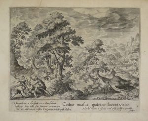 Landscapes with the parable of the good Samaritan, s.d. Suite of 6 engravings, +/- 19/20 x 24/25 cm (large margins); engr. names, numbers and Latin captions. Some marg. (or more, cf. pl. 1) tears, sl. brown., formerly bound.