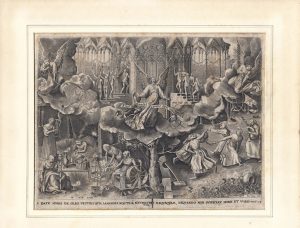 The parable of the prudent and foolish virgins, s.d. Tool engr. publ. by H. Cock, 22 x 29 cm (sm. margins); engr. names and Latin caption. Pasted by margins under passe-partout. Sl. brown., almost on recto, margins unequal.