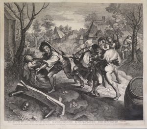 The brawl of the peasants, s.d. Etching and tool engraving, 42,5 x 52,3 cm; engr. names, Latin verse caption & dedication. Underlaid, right lower corner defect. (lacking +/- 8 x 7 cm incl. the last words of the dedic. with Vorsterman's name, visibly...