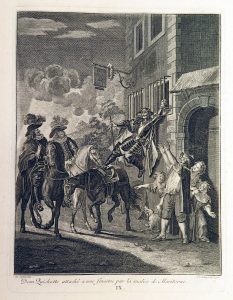Suite complète en retirage (avec les numéros en chiffres romains) des gravures de l'édit. de La Haye, 1746 : 31 figures gravées par van Schley, Picart, Fokke et Tanjé d'après Coypel (25), Cochin fils (2), Tremolières (2), Boucher et Lebas. Les compositions conçues par Coypel sous forme de tableaux dès les années 1715-1720 servirent de types pour bien d'autres éditions illustrées au cours du XVIIIe s.