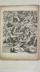Rare suite by Peter I De Jode (1570-1634) after the famous Last Judgement painted by “the French Michelangelo” Jean Cousin (16th c.) for the Church of Vincennes (now at the Louvre). The edition, dedicated to Louis XIII by “Guilielmus Wittenbroot Belga” consists of an engraved title, c. 25,5 x 42 cm, within ornamental scrollwork border, 1 (of 2) engraved ff. with biblical quotations, c. 25,5 x 42 cm and 9 large engravings, c. 48,5 x 40,5 cm, illustrating the Last Judgement. 1 pl. with approbation by Laurens Beyerlinck.