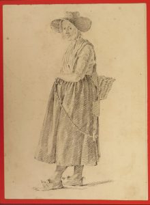 3 pencil drawings, 18th c. ? +/- 23 x 12 cm, laid paper. One stuck by corners causing sm. tear not affecting the drawing. Some minor staining. Nice drawings featuring a smoking peasant, his wife and son or servant.