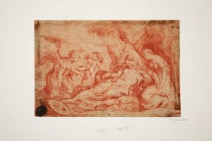 Beautiful drawing representing Christ lying between Magdalena and the Virgin, observed by 3 angels. Stamp Conte di Bardi (Lugt 336) in lower right corner, armorial red wax stamp in lower left corner.