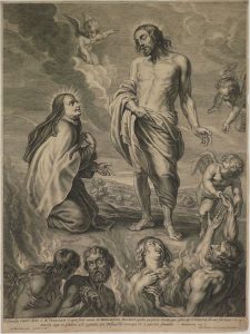 St. Theresa intercedes for Bernardin Mendozy, s.d. Tool engr. publ. Antwerp, Gillis Hendricx, 46,4 x 34,5 cm (trimmed to the platemark); engr. names and Latin caption "Exstimulat Christus Dominus S.M. Tereiam ut opem ferat animae D. Bernardini...