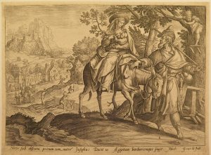 De Jode, Gerard - [The flight to Egypt], s.d., 19,2 x 26,4 cm (trimmed); Latin caption below. - Bernard, Theodor - Hyems, s.d., 18,2 x 22,2 cm (trimmed, foxing stain); engr. name and "DC" in middle of lower border. N. 4 of a suite. - Van Mander, K. - [Women], s.d., publ. by Visscher, 20,5 x 29 cm. Compl. underlaid. Allegorical print. - [Bloemaert, A. & Fr.] - Januarius, s.d., 12,5 x 16,5 cm. Landscape with figures, 1 of the 12 months publ. by N. Visscher. - de Vos, M. after A. Collaert - Maria Aegyptiaca. - Ivetta Leodiensis. - Coleta Boyletta. 17,7 x 21,7 cm. Waterstains, browning. - Merian, M. - [Hunting], 2 copper engr., Basel, 1610, 15 x 20 cm; engr. names and date in the plates. Underlaid. - Berghem, C., de Visscher, C. - [The seated old herd], 19,4 x 26,3 cm; numb. 4 in r. margin. - Matham, J. - Qui genus humanum superavit robore Sampson (...), c. 1612, after P.P. Rubens, 37,7 x 43,5 cm (trimmed, compl. underlaid); lettered below on the left "Cum privil. Sa. Caes. M.", on the right "Pet. Pauolo Rubens pinxit / Ja. Matham sculp. et excud.", with 4 lines in latin. Later impression on laid paper. Samson asleep in Delilah's lap; a barber assisted by an old woman cuts off the judge's hair. - Caukercken, C. - Siet dit soet getal van dryen (...), s.d. Antw., A. van Diepenbeek, after Van Dyck, 42 x 30,5 cm. Later impression. Charity featured as a women with 3 small children. - Vanden Wyngaeerde, Fr. - Omnia vincit amor, s.d. After Tizian, 27 x 37,5 cm. Later impression. R. edge partly remargined; some foxing.