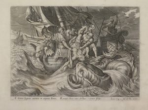 [The four seasons], s.d. Suite of 4 pl. engraved after Raphaël Sadeler I and after Jacopo Bassano, publ. by H. Hondius, 21 x 16,5 cm (large margins). A few marg. tears, "Hyems" completely restored. - [The story of Jonas], s.d. Suite of 4 pl., 18,5 x 24,5 cm (large margins); engr. names H. and A. Wierix, pl. 2 with "M. de Vos inventor", pl. 4 with "G. de Iode excudebat", Latin captions. A few repaired tears.