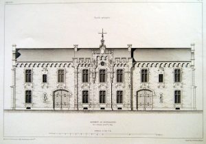 l'architecture belge au milieu du XIXe s. Complet des titre, faux-titre, table des planches et 120 lithographies (num. 1-117 avec  29bis, 31 bis et 82 bis). Les planches reproduisent des réalisations de Lambeau, Cluysenaar, Demany, Dens, Blandot, Thirion, Beyaert, Saintenoy, Umé & Casterman, etc. Contient aussi d'importantes illustrations de la "nouvelle" prison de Louvain et de Hasselt.