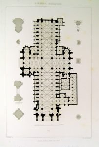 Remarkable collection of architectural & topographical plates of important French historical monuments, commissionned by Achille Fould (1800-1867), a French financier and politician. As minister of state and of the imperial household, he directed the Paris exhibition of 1855. Engr. ills. on chine collée, made after designs of E. Viollet-le-Duc, E. Boeswillwald, P. Abadie, E. Millet etc. by A. Soudain, F. Penel, C. Sauvageot, etc. All depicted monuments are fully described. Vol. 1 : "Architecture antique & Moyen Age: Architecture religieuse", with 64 full-page (incl. 5 col. by Regamey) and 8 double-page pls, depicting i.a. the churches of N.D. de Beaune, Eu, N.D. de Laon, Loupiac de Cadillac, Neuvy-Saint-Sépulcre, etc. Vol. 2 : "Moyen Age : Architecture religieuse", with 71 full-page (incl. 1 col.) and 1 double-page pl. of i.a. Abbaye de Thoronet, Eglise de Saint-Saturnin à Toulouse, Eglise de la Madeleine à Vézelay, etc. Vol. 3 : "Moyen Age : architecture militaire", with 38 full-page and 4 double-page pls of Carcassonne (i.a. 2 maps) and Avignon. Vol. 4 : "Renaissance. Architecture civile", with 40 full-page (incl. 1 col.) and 10 double-page pls, of i.a. Château de Blois, ville d'Orléans (i.a. 1 map), etc.