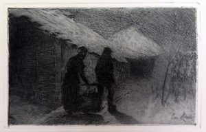 XIII, 1893. Set van 13 grav.; in potlood gesigneerd, enkele gemonogrameerd of gesigneerd in de plaat. Folio, orig. kaft bijgevoegd (zwaar beschadigd met verlies in linker bovenhoek), het geheel bewaard in een beschermende farde. Scheur in het blad...