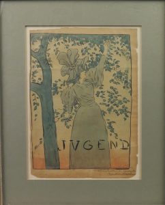 "Jugend", s.d. Aquarelle et encre de Chine, 26 x 19,2, vélin teinté 29 x 21 cm; titrée dans le motif, signée et dédic. à "mademoiselle de Chazal hommages respectueux" dans le coin inf. dr. Sous passe-partout, verre et cadre (non...