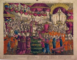 12 drawings & etchings concerning Napoleon, various authors & sizes. Interesting set. The coronation of Napoleon Buonaparte Emperor of the French at Paris on the 2d of December 1804. London, G. Thompson, 1805, etching, 37 x 47 cm, orig. col. (stain...