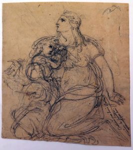 [Croquis divers], s.d. Crayon noir ou sanguine, encre, lavis d'encre de Chine, sur 8 ff., papiers et formats divers; non signés, identifiés par une autre main, 1 daté 1830.