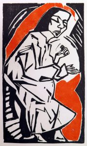 Heckel, Erich - Frau, [1913]. Woodcut in colours, 18 x 10,5 cm, wove paper protected by a titled silky paper. From an unidentified portfolio (1924 or 1925 ?). - Schmidt-Rottluff, Karl - Elbhafen, 1907. Lithogr., 19,7 x 29,7 cm, strong wove paper; monogr. in the stone. Published in "Zeitschrift für bildende Kunst", 1908. - Campendonck, Heinrich - Bauerngang, 1918. Woodcut, 7,7 x 23,2 cm, wove paper, large margins, inscription on verso "Tiere. Holzschnitt". Nice pl. from deluxe ed. of "Das Kunstblatt", 1918.
