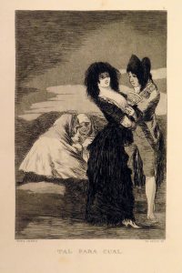 Set of 20 (of 80) prints. Present : Tal para cual (n. 5), Nadie se conoce (6), Ni asi la distingue (7), Que se llevaron ! (8), Tantalo (9), El amor y la muerte (10), Y van desplumados (20), Chiton (28), Porque esconderlos ! (30), Por que fue sensible (32), Al conde palatino (33) Las rinde el sueño (34), Obsequio a el maestro (47), Duendecitos (49), Se repulen (51), Hasta la muerte (55), Y aun no se van ! (59), Si amanece ! Nos vamos (71), No hay quien nos desate ! (75), ? Está V. ? pues, como digo... Eh ! cuidado ! si no... (76).